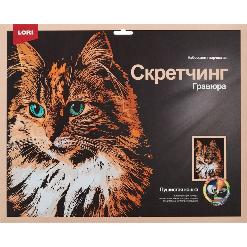 Гравюра -скретчинг цветная 30х40см Животные Пушистая кошка Гр-766