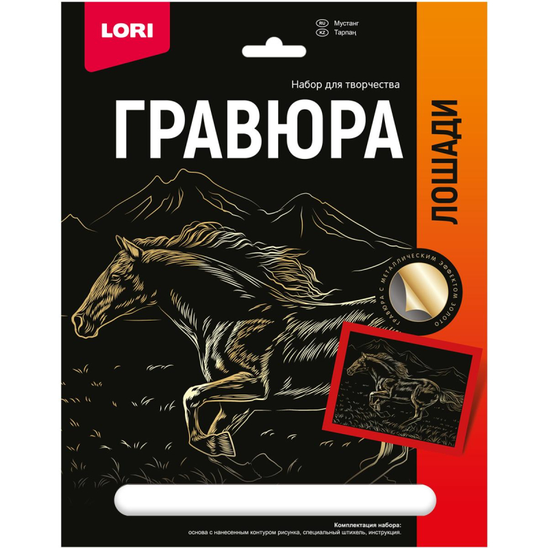 Гравюра 18х24 Лошади Мустанг (золото) Гр-685