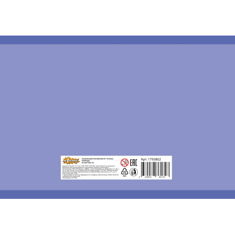 Альбом для рисования №1 School Природа 40 л. на завязках А4, ВД
