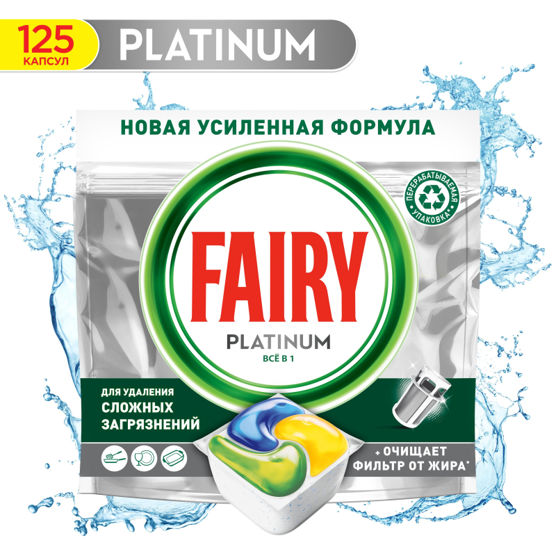 Капсулы д/посудомоеч. машин FAIRY Platinum Plus All in 1,Лимон 125шт/уп