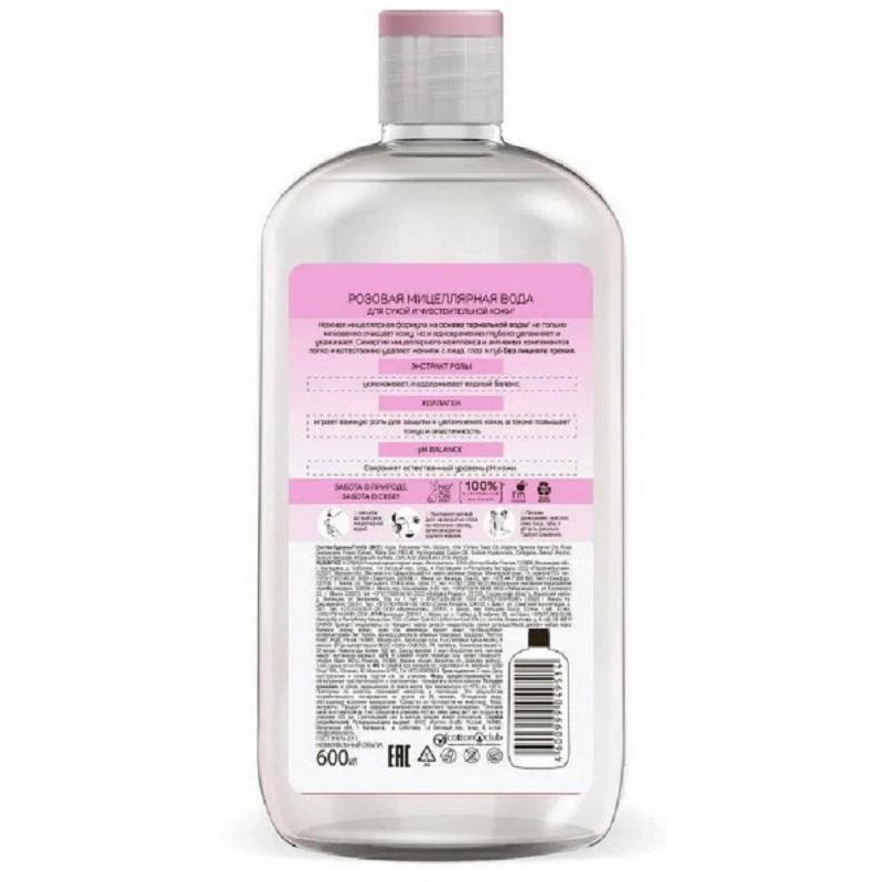Розовая мицеллярная вода для сухой и чувствительной кожи. Нежная мицеллярная формула на основе термальной воды не только мгновенно очищает кожу, но и одновременно глубоко увлажняет и ухаживает. Синергия мицеллярного комплекса и активных компонентов легко и естественно удаляет макияж с лица, глаз и губ без лишнего трения. Экстракт розы успокаивает, поддерживает водный баланс. Коллаген играет важную роль для защиты и увлажнения кожи, а также повышает тонус и эластичность.
