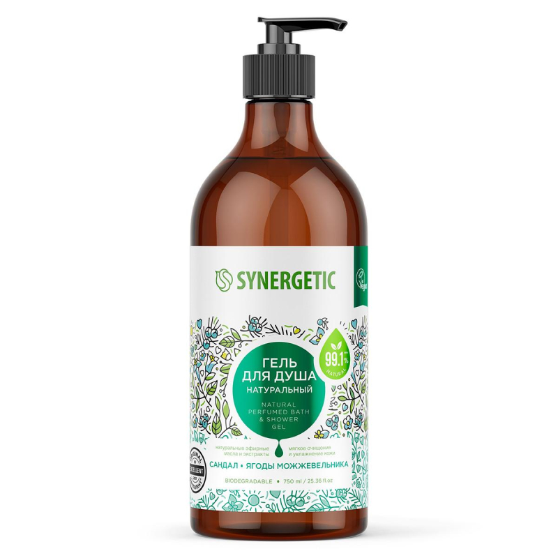 Натуральный биоразлагаемый гель для душа Synergetic 'Сандал и ягоды можжевельника' - это деликатное средство для очищения кожи, на 99,1% состоящее из натуральных компонентов. Гипоаллергенный аромат геля Synergetic 'Сандал и ягоды можжевельника' разработан в швейцарском доме Givaudan с использованием натуральных эфирных масел пачули, ладанника, герани, гурьюнского бальзама и розового перца. Масла макадамии и гранатовых косточек питают и увлажняют кожу, делая ее гладкой и бархатистой. Экстракты сандалового дерева и можжевельника увлажняют кожу и оказывают тонизирующий эффект. Софоролипид из рапсового масла мягко очищает и сохраняет естественный микробиом кожи. Комплекс витаминов-антиоксидантов защищает кожу от вредных воздействий окружающей среды и восстанавливает барьерные функции кожи. Физиологичный уровень pH 5,5 гарантирует мягкость кожи и безопасность при частом использовании даже для чувствительной кожи. Гель для душа сертифицирован британской организацией The Vegan Society. Способ применения: Нанести гель на влажную кожу, вспенить и тщательно смыть водой. Перед применением рекомендуется взболтать. Возможно выпадение естественного осадка и незначительное изменение цвета геля, не влияющие на его качество и свойства. Меры предосторожности. При попадании в глаза, промыть водой. Только для наружного применения. Хранить отдельно от еды. Состав: Aqua; Lauryl Glucoside; Cocamidopropyl Betaine; Sodium Lauroyl Methyl Isethionate; Rapeseed Sophorolipids; Lauroyl / Myristoyl Methyl Glucamide; Coco Glucoside; Glyceryl Oleate; Lecithin; Tocopherol; Ascorbyl Palmitate; Hydrogenated Palm Glycerides Citrate; Panthenol; Parfum; Babassu Oil Polyglyceryl-4 Esters; Sweet Almond Oil Polyglyceryl-4 Esters; Hydroxypropyl Guar Hydroxypropyltrimonium Chloride; Saccharide Isomerate; Tetrasodium Glutamate Diacetate; Glycerin; Santalum Album (Sandalwood) Wood Extract; Juniperus Communis Fruit/Leaf Water; Sodium Citrate; Sodium Benzoate. Хранить при температуре от +5 до +25 °С вдали от нагревательных приборов и огня. Не допускается хранение под непосредственным воздействием солнечного света. Срок годности: 24 месяца с даты производства при соблюдении условий хранения.