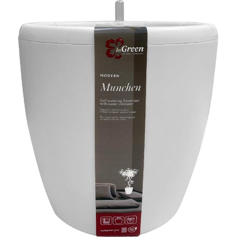 Горшок с автопол InGreen Munchen D250мм 9л с внутр вст 6,2л, круглый, белый