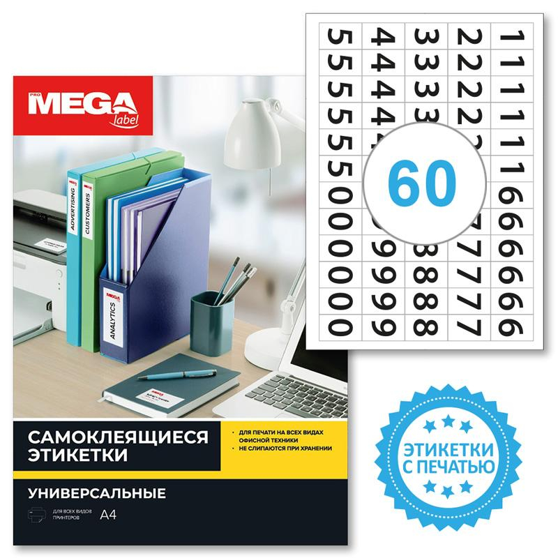 Этикетки самоклеящиеся Promega label Цифры 38х23,5 60шт на А4, 20л/уп