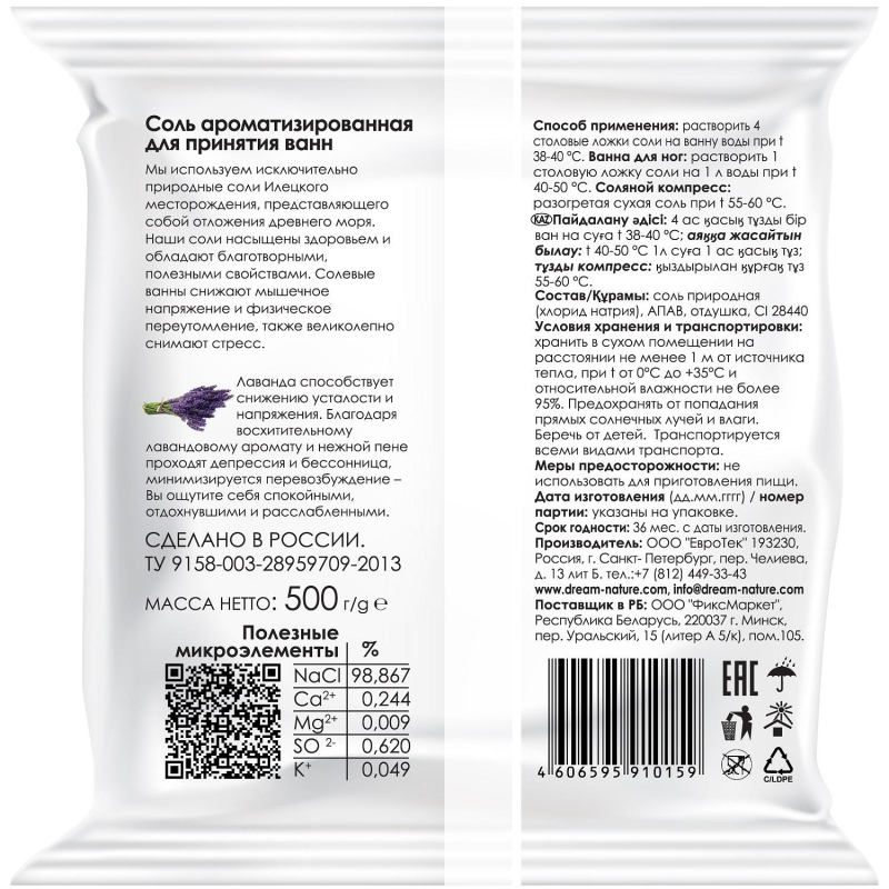 Погрузитесь в целебные морские воды с ароматной солью для ванн Dream Nature и побалуйте себя уникальным восстанавливающим СПА-ритуалом после долгого дня. Прекрасный антицеллюлитный детокс - уход за телом. Ароматическая соль для ванны ускоряет естественное обновление кожи, выводит токсины, помогает наладить обменные процессы и улучшить самочувствие, обладает лечебными и профилактическими свойствами, способствует похудению. Сердцем и душой нашей соли для ванн с ароматом лаванды. Приятный гармоничный запах прекрасно успокаивает, дарит заряд бодрости и хорошего настроения. Натуральная соль для ванной подойдет для купания детей и станет замечательным подарком для ухода за кожей маме, для девочки, девушке или подруге на Новый год и на День рождения.