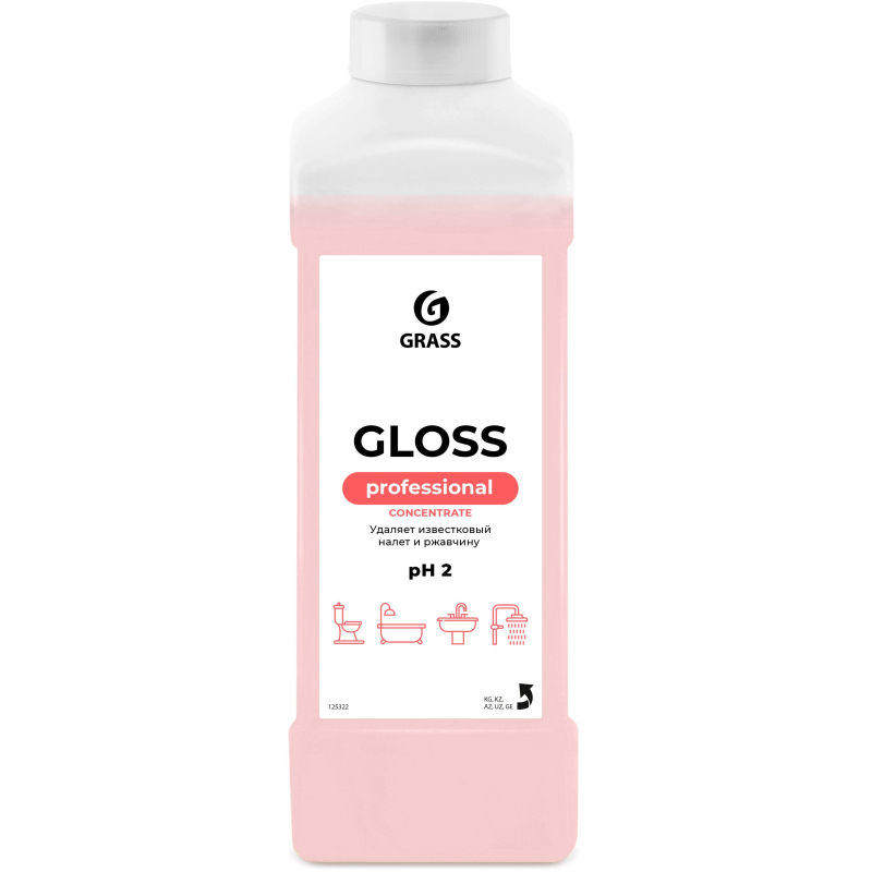 Средство для уборки санитарных помещений Grass Gloss Concentrate 1 л (концентрат). Назначение: Универсальное концентрированное чистящее средство для любых поверхностей, стойких к воздействию кислот. Подходит для бережной чистки полов, стен, ванн, душевых кабин, унитазов, раковин, кранов и др. оборудования. Мгновенно удаляет известковый налет, солевые отложения, ржавчину, мочевой камень и другие стойкие загрязнения. Придает блеск, сохраняя эффект на несколько дней. При правильном применении не повреждает хромированные, пластиковые поверхности, кислотостойкую плитку и эмаль. Способ применения: В концентрированном виде средство применяется для очистки санузлов. Ежедневная уборка: для очистки пола и стен развести концентрат в пропорции 5-10 мл на 1 л воды; для ручной очистки инвентаря развести концентрат в пропорции 10-20 мл на 1 л воды. Генеральная уборка: для очистки плитки, стекла, гранита, удаления остатков цемента, бетона, ржавых пятен, известкового камня, строительных смесей и других загрязнений концентрат разводят в пропорции 100 мл на 1 л воды. Концентрация раствора зависит от характера загрязнения. Использовать строго по назначению! Состав: >30% очищенная вода; >5%, но