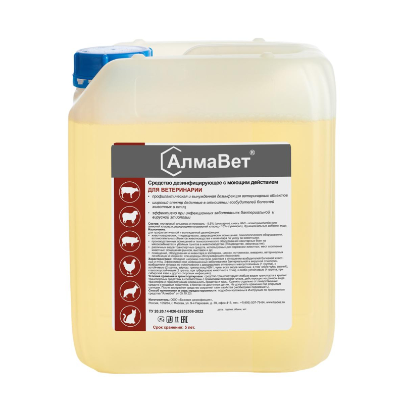 Дезинфицирующее средство АлмаВет с моющ.эффект. д/ветеринарии, 5 л (евро)