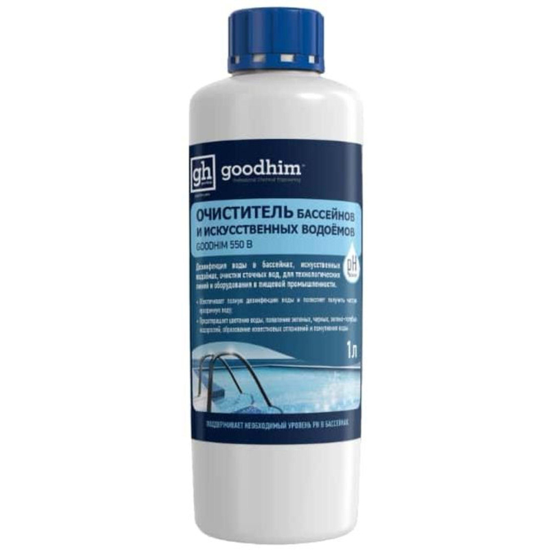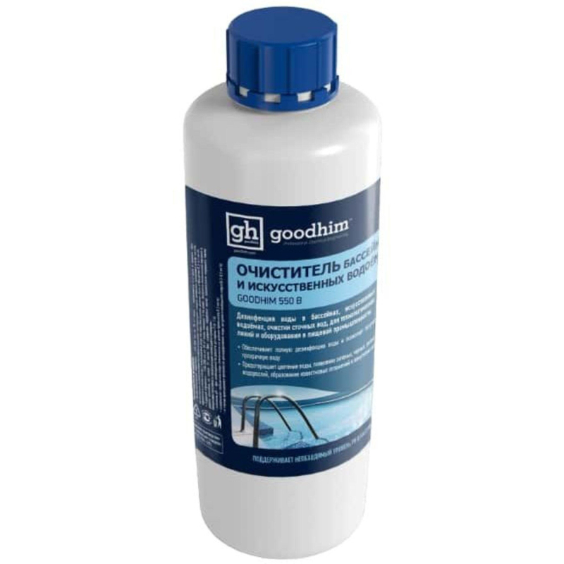Средство для дезинфекции воды в бассейнах Goodhim 550B 1 л (концентрат). Назначение: Экологически чистое средство для уничтожения микроорганизмов и бактерий. Используют для дезинфекции воды в бассейнах, искусственных водоемах, очистки сточных вод, а также технологических линий и оборудования в пищевой промышленности. Основные свойства: Обеспечивает полную дезинфекцию воды и позволяет получить чистую прозрачную воду. Предотвращает цветение воды, появление зеленых, черных, зелено-голубых водорослей, образование известковых отложений и помутнения воды. Поддерживает необходимый уровень РН в бассейнах. Способ применения: Препарат можно использовать, как в концентрированном виде, так и предварительно разбавив его водой (1:5 или 1:10). Полученный раствор добавляется порциями непосредственно в воду бассейна вблизи места подачи или в нескольких местах одновременно во время работы циркуляционного насоса. Количество препарата зависит от температуры воды, погодных условий и интенсивности использования бассейна. Рекомендуемые дозировки: Профилактическая обработка - 50-100 мл на 10 м3 воды - добавляется 2-3 раза в неделю. При интенсивном использовании бассейна и высоких температурах следует увеличить дозировку и/или частоту обработки в соответствии с показаниями хлор-тестера (показатель должен быть в пределах 0,3-0,5 мг/л). Ударная обработка - 250-300 мл на 10 м3 воды каждые 7-14 дней. Требуется технический перерыв в работе бассейна не менее 12 часов. При 'ударной' обработке после технического перерыва перед введением бассейна в эксплуатацию необходимо проверить: значение рН - при необходимости довести до нормы (7,0-7,4); содержание свободного хлора (показатель не должен превышать 0,5 мг/л); в случае превышения произвести дехлорирование воды до уровня свободного хлора (0,3-0,5 мг/л). Измеренное с помощью тестера хлора содержание свободного хлора в воде бассейна после обработки и перемешивания должно составлять 0,3-0,5 мг/л. Упаковка и фасовка: Пластиковая канистра 1л, налив. Хранение и транспортировка: Хранить в открытом проветриваемом помещении в оригинальной герметично закрытой упаковке при t от 10 до +25?С вдали от нагревательных приборов; избегать контакта с кислотами, взрывчатыми и огнеопасными веществами; беречь от нагрева и прямых солнечных лучей. Меры безопасности: Не смешивать с другими химическими препаратами; беречь от детей, при попадании на кожу и глаза промыть большим количеством воды, при необходимости обратиться к врачу. Состав: Хлорсодержащие соединения, стабилизатор, ПАВ, содержание активного хлора - не менее 130 граммов на литр. Срок годности: 36 месяцев с даты изготовления.