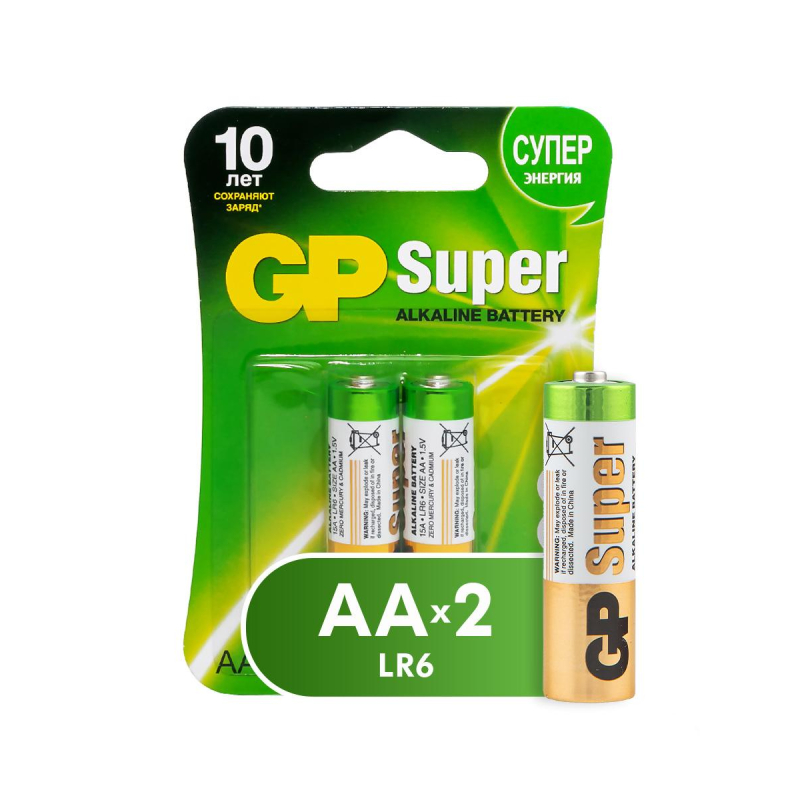 Батарейка GP Super AA/LR6/15A GP15A-2CR2 алкалин. 2шт/уп (73531)