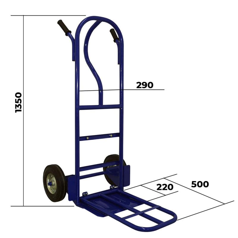 Грузовая тележка с дополнительной полкой КГ 150 П служит для перевозки грузов весом до 150 кг. Оснащена дополнительной откидной полкой. На универсальную ось закреплены литые колеса диаметром 200 мм.