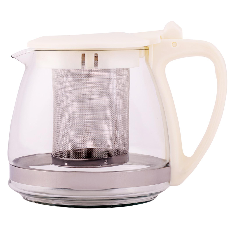 Заварочный чайник 0,7 л TM Appetite бежевый с металлическим фильтром изготовлен из термостойкого стекла. Корпус и крышка из цветного пластика, фильтр из нержавеющей стали, внутренняя колба из стекла. Изделия из стекла не впитывают запахи, благодаря чему вы всегда получите натуральный, насыщенный вкус и аромат напитков. Заварочный чайник из стекла удобно использовать для повседневного заваривания чая любого сорта. Можно мыть в посудомоечной машине.