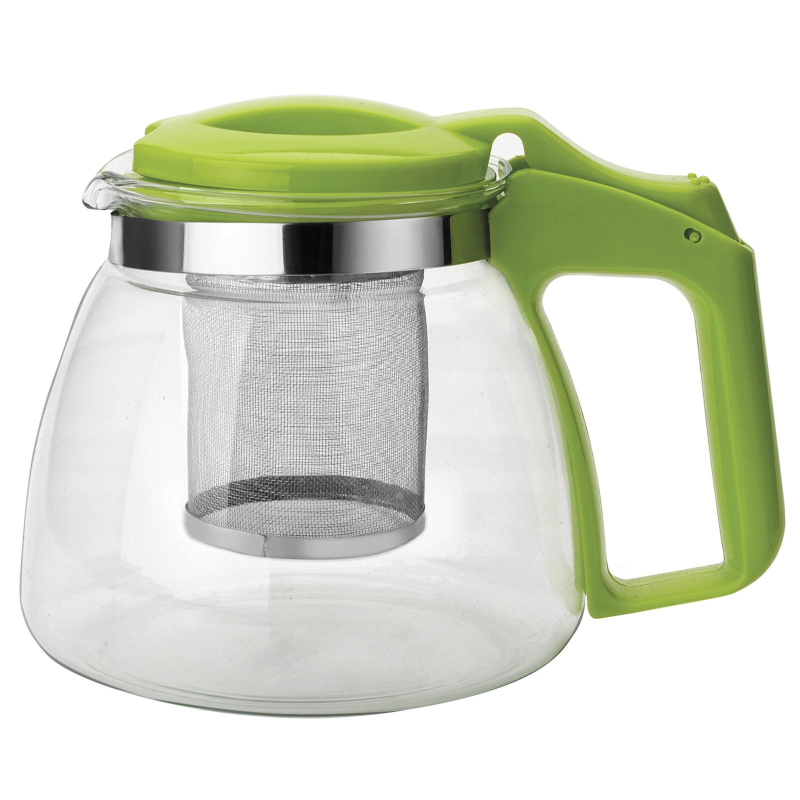 Заварочный чайник 0,9 л TM Appetite зеленый с металлическим фильтром изготовлен из термостойкого стекла. Корпус и крышка из цветного пластика, фильтр из нержавеющей стали, внутренняя колба из стекла. Изделия из стекла не впитывают запахи, благодаря чему вы всегда получите натуральный, насыщенный вкус и аромат напитков. Заварочный чайник из стекла удобно использовать для повседневного заваривания чая любого сорта. Можно мыть в посудомоечной машине.