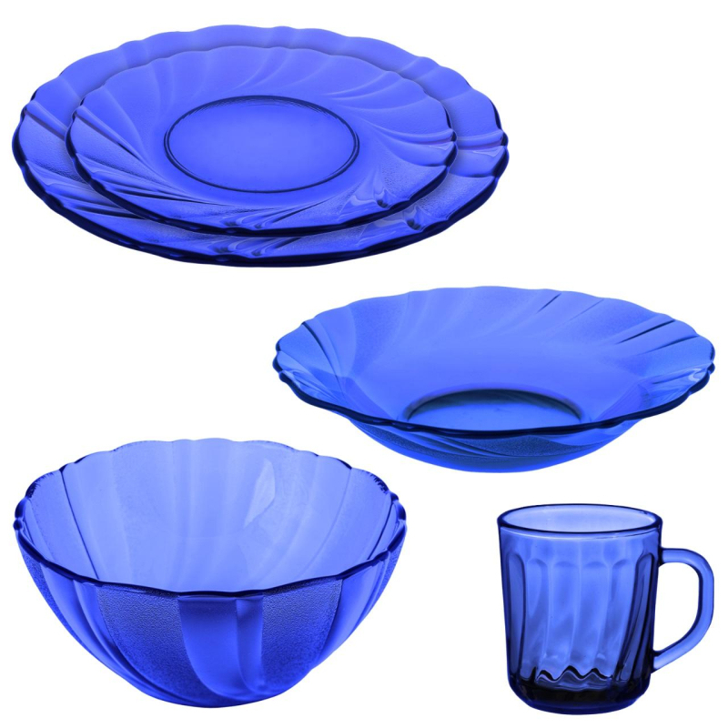 Набор столовой посуды 25 предметов Sea Brim Saphir Комплектация: - Тарелка десертная, диаметр 17 см - 6 шт; - Тарелка плоская, диаметр 21см - 6 шт; - Тарелка глубокая, диаметр 20 см - 6 шт; - Кружка, объем 250 мл - 6 шт; - Салатник высокий, диаметр 18 см - 1 шт. Посуда устойчива к перепадам температуры, ее можно использовать в микроволновой печи (СВЧ) и посудомоечной машине.