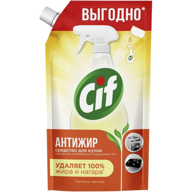 Чистящее средство для кухни Cif Рефилл 500 мл. Назначение: Порадовать любую хозяйку может новинка от Cif - сменный блок для спрея Антижир. Сменный блок для спрея от бренда Cif позволит сэкономить 50% по сравнению со спреем в обычной упаковке и обеспечит 100% удаление жира, нагара и других загрязнений на кухне. Формула сменного блока Cif Антижир идентична классическому спрею Cif Антижир Легкость чистоты для кухни. Чистящее средство Cif безопасно для кухонных поверхностей, ежедневно контактирующих с пищей. Средство содержит соду и масла лимона и апельсина, мгновенно проникает вглубь загрязнений и удаляет их на 100%. Cif Антижир быстро справляется со следами от пищи и пригоревшей еды, с засохшим жиром, копотью и нагаром, не оставляя разводов. Он подходит для чистки газовых, индукционных и стеклокерамических плит, духового шкафа, микроволновой печи, гриля, вытяжки, а также поверхностей из нержавеющей стали. Cif подарит чистоту вашей кухне и наполнит ее свежим цитрусовым ароматом! Способ применения: Откройте упаковку и перелейте средство в бутылку с распылителем. Распылите спрей на поверхность, оставьте на несколько секунд, затем протрите тряпочкой. Для удаления застарелой грязи оставьте средство на несколько минут перед тем, как протереть. Доза (1-2 распыления на 1 кв.м.) спрея помогает сократить расход средства. Меры предосторожности: Используйте только на остывших поверхностях. Не используйте на окрашенных или деревянных, алюминиевых поверхностях, линолеуме или необработанном камне. Перед использованием на окрашенных поверхностях и поверхностях неизвестного типа сначала попробуйте средство на небольшом, незаметном участке. Перед использованием ознакомиться с маркировкой продукта. Избегайте вдыхания спрея, попадания в глаза и длительного контакта с чувствительной или поврежденной кожей. После работы тщательно вымыть руки. ПРИ ПОПАДАНИИ В ГЛАЗА: Осторожно промыть глаза водой в течение нескольких минут. Если раздражение не проходит, обратиться за медицинской помощью, по возможности показать маркировку продукта. Использовать только в хорошо вентилируемом помещении. Хранить в недоступном для детей месте. Состав: