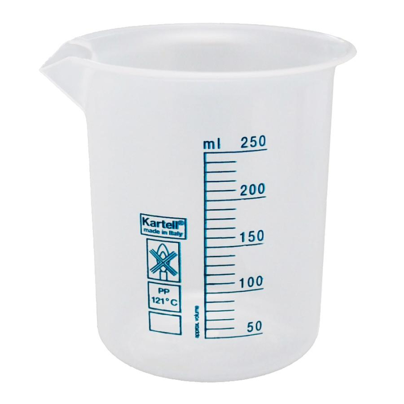 Предназначен для отмеривания ориентировочного объема веществ и иных процедур с нелетучими жидкостями. Изготовлен из специального особо прозрачного полипропилена, выдерживает автоклавирование при температуре +121°С в течение 15 минут и постоянную эксплуатацию при температуре до +100°С. Вместимость - 250 мл. Высота - 95 мм. Диаметр - 71 мм. Цена деления - 10 мл.