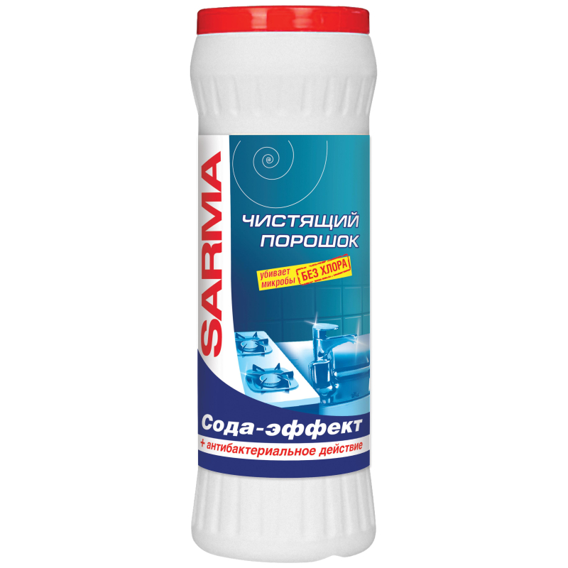 Универсальное чистящее средство Sarma Сода/эффект порошок 400 г. Назначение: Предназначен для очистки керамических, фаянсовых, эмалированных, металлических и других твердых поверхностей на кухне, в туалетной и ванной комнатах, а также чистки посуды от налета, жира и пригоревших остатков пищи. Не содержит хлор. Содержит соду - натуральный обезжиривающий компонент. Антибактериальный эффект подтвержден ФБУН НИИ Дезинфектологии Роспотребнадзора. Способ применения: Нанести на влажную поверхность, почистить и смыть водой. Для отбеливания и антибактериальной обработки равномерно распределить порошок по влажной поверхности, оставить на 3-5 минут и смыть водой. Меры предосторожности: при попадании в глаза вызывает выраженное раздражение. Промыть водой и обратиться к врачу. Избегать пыления и вдыхания порошка. Не использовать вместе с другими чистящими или моющими средствами. БЕРЕЧЬ ОТ ДЕТЕЙ. Вредно для водных организмов. Состав: абразив, сода, кислородсодержащий отбеливатель (менее 5%), АПАВ (менее 5%), антибактериальный компонент, краситель, отдушка. Условия хранения: От 5? до 25? С. Срок годности: 36 месяцев.
