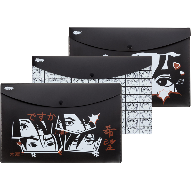 Папка-конверт на кнопке №1 School Аниме Комикс размером 320х220 мм (формат А4) выполнена из экологичного полипропилена и предназначена для хранения документов. Толщина материала 180 мкм. Закрывается на кнопку. Одна папка-конверт вмещает до 80 листов стандартной плотности. Цена указана за упаковку из 3 штук.