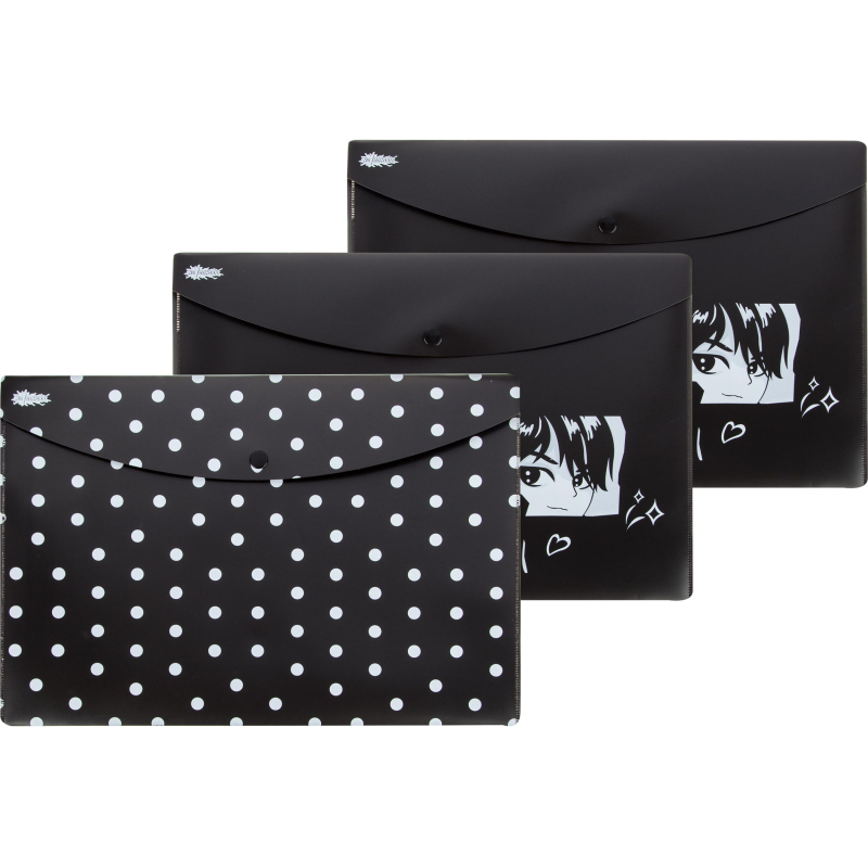 Папка-конверт на кнопке №1 School Аниме Готика размером 320х220 мм (формат А4) выполнена из экологичного полипропилена и предназначена для хранения документов. Толщина материала 180 мкм. Закрывается на кнопку. Одна папка-конверт вмещает до 80 листов стандартной плотности. Цена указана за упаковку из 3 штук.