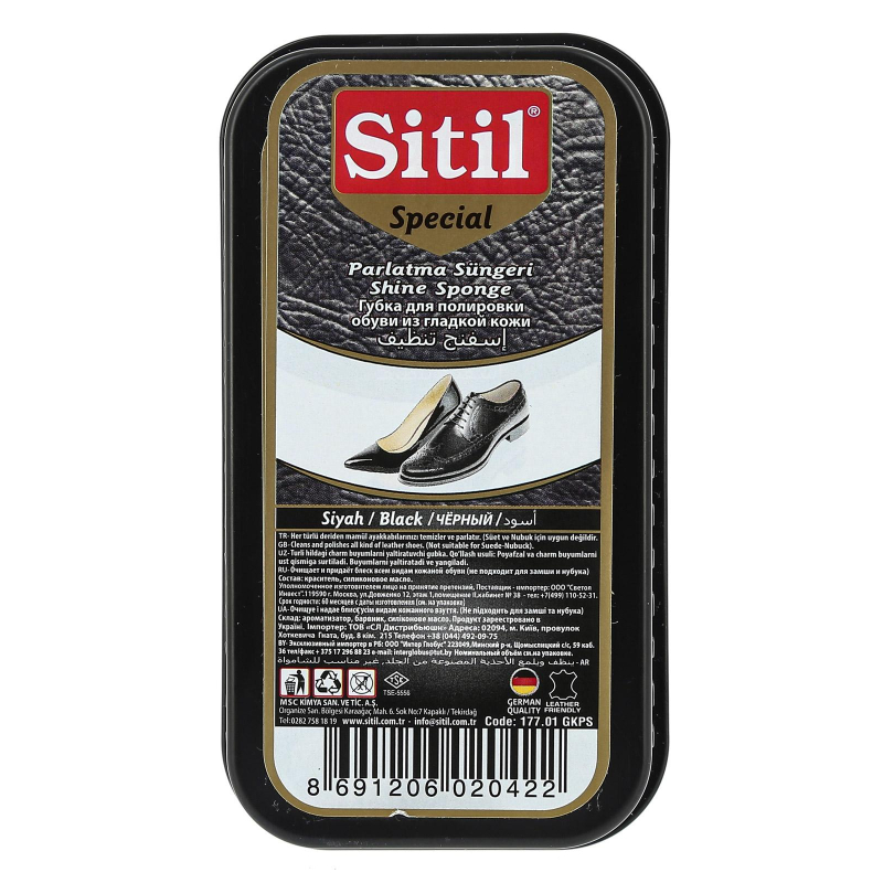 Губка для полировки обуви из гладкой кожи Sitil Shine Sponge черная является идеальным средством для ежедневного ухода. Губка отлично полирует обувь благодаря качественной пропитке. Длительный эффект блеска на протяжении всего дня. Не царапает материал, поэтому безопасна в использовании. Губка имеет высокую прочность, за счет чего прослужит долгое время.
