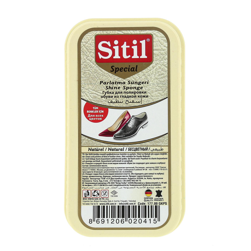Губка для полировки обуви из гладкой кожи Sitil Shine Sponge бесцветная является идеальным средством для ежедневного ухода. Губка отлично полирует обувь благодаря качественной пропитке. Длительный эффект блеска на протяжении всего дня. Не царапает материал, поэтому безопасна в использовании. Губка имеет высокую прочность, за счет чего прослужит долгое время.