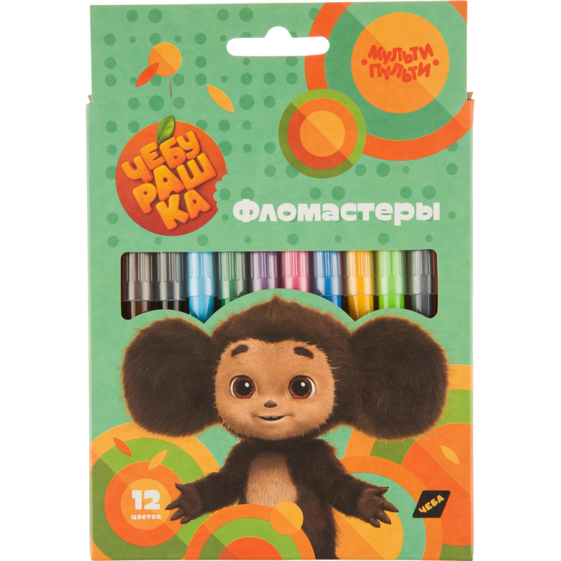 Фломастеры Мульти-Пульти Чебурашка, наб.12цв., смыв,европодвес,ФЛЧБ_53015