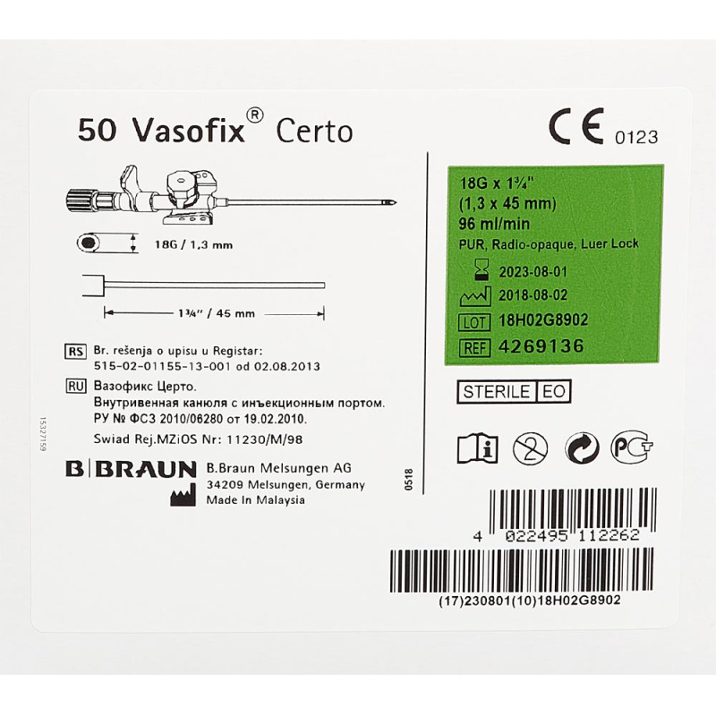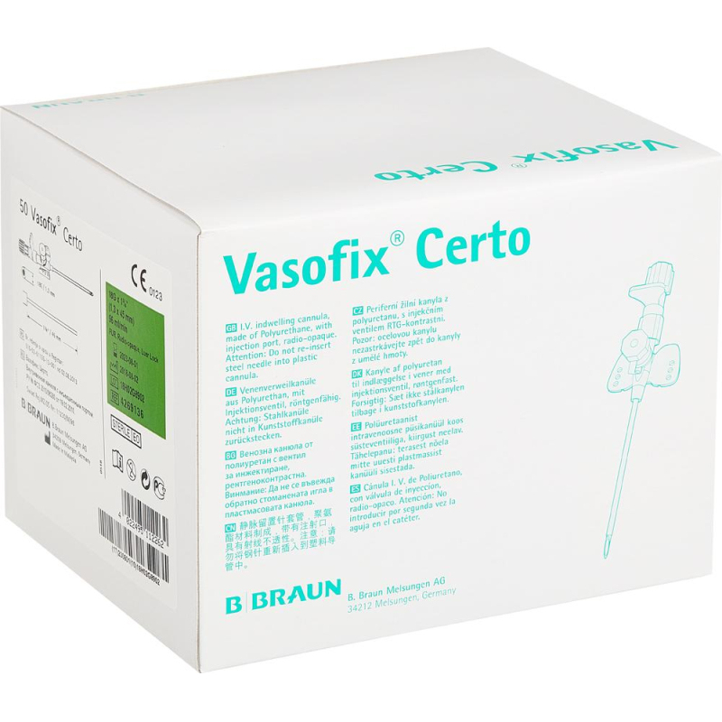 Катетер периферический с доп.портом ВазофиксЦерто 18G (1,3x45 мм) 50шт/уп