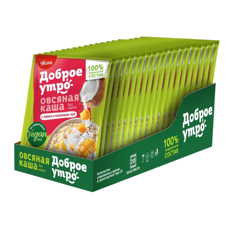 Каша овсяная УВЕЛКА на основе кокосового напитка с манго и семенами чиа - Кокосовый напиток - насыщен полезными элементами и жирами. Новинка для тех, кто любит разнообразие и стремится к правильному питанию. Состав: хлопья овсяные, сахар, стружка кокосовая, манго в рисовой обсыпке, кокосовый сухой напиток (мякоть кокоса, мальтодекстрин), семена чиа, соль, ароматизатор натуральный. Пищевая ценность на 100 г продукта (средние значения): белки - 9,5 г; жиры - 7,5 г; углеводы - 68,0 г; пищевые волокна - 5,0 г; Энергетическая ценность - 1640кДж/ 390ккал Срок годности: 12 мес. Условия хранения: Хранить в сухом помещении при температуре не более 25°С. Вес: 960 г. Страна производства: Россия