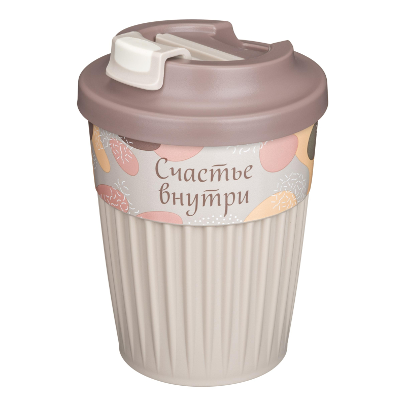 Термостакан Phibo Счастье 350 мл бежевый Стакан 350 мл предназначен для многоразового использования. Удобно брать горячие и холодные напитки с собой в дорогу, на работу. Благодаря клапану стакан надолго сохраняет напиток горячим и не дает напитку расплескаться по пути. Более экологичная альтернатива одноразовым стаканчикам для кофе. Благодаря рифленым стенкам стакана, горячий напиток не обжигает руки. Декор нанесен с помощью технологии IML, поэтому изображение не сотрется и не отклеится. Объем термостакана: 350 мл. Размеры (ВхШхГ): 8,8x9,2x12,4 см. Время сохранения тепла: до 2 часов. Время сохранения холода: до 2 часов.