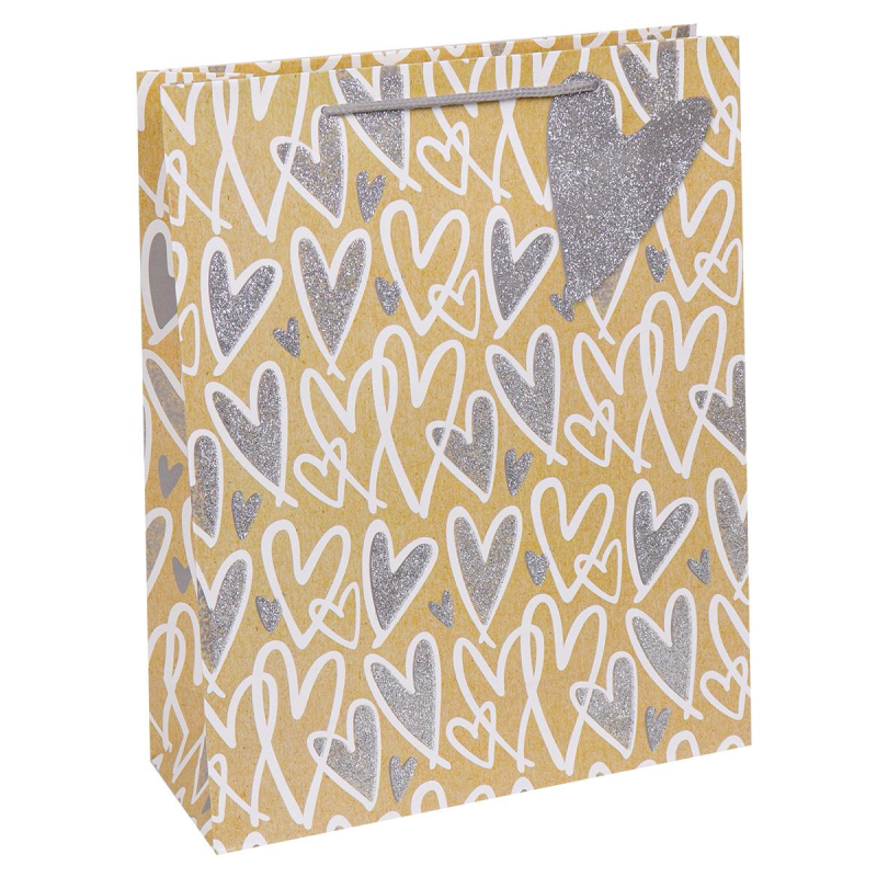 Пакет подарочный Dream Cards с мат.лам.и глиттером.Сердечки,серые.,ППК-1938