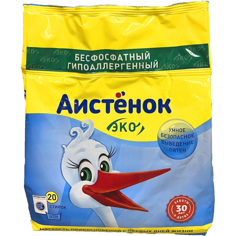 Порошок стиральный универсальный Аистенок 1.5 кг. Назначение: Бесфосфатное экологичное средство для стирки одежды и белья детей и людей с очень чувствительной кожей "АИСТЕНОК" с первых дней жизни. Предназначено для стирки, отбеливания и замачивания детской одежды, в том числе пеленок и белья для детей первого года жизни. Для всех видов тканей, кроме шерсти и шелка, в стиральных машинах любого типа и ручной стирки. Инновационная формула, содержащая растительные моющие вещества и экокомпоненты, как волшебный вихрь удаляет пятна и обеспечивает суперчистоту по результату и мягкость по действию. Новая формула на основе растительных моющих веществ и экокомпонентов глубоко проникает в волокна тканей, помогая удалить самые стойкие пятна, и обеспечивает абсолютное выполаскивание порошка. Специальные непылящие гранулы безопасны при использовании. Сочетание натуральных компонентов и мягкого отбеливателя позволяет сохранять структуру и прочность ткани. Ионизировано серебром - идеальной природной защитой от бактерий. Новая формула обогащает цвет изделий, сохраняя их первоначальный вид, а белому придает ослепительную белизну: Без фосфатов; Без красителей; Без ПАВ нефтехимического производства; Без продуктов животного происхождения. Содержит комплексную систему защиты стиральной машины от накипи. Способ применения: указан на изображение упаковки. Меры предосторожности: Хранить вдали от пищевых продуктов; Беречь от детей; В случае попадания средства в глаза немедленно промыть проточной водой; При повышенной чувствительности и повреждениях кожи избегать длительного контакта с любыми средствами для стирки. Состав: