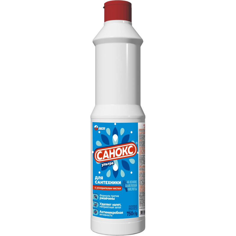 Средство для сантехники Санокс ультра 750 гр. Назначение: Предназначено для чистки раковин, унитазов, кафеля и другого сантехнического оборудования от ржавчины, известковых отложений, жировых и прочих загрязнений. Способ применения: Равномерно распределить средство по загрязненной поверхности унитаза (предварительно смоченной водой), в том числе под ободком, оставить на 3-5 минут, почистить щеткой, затем смыть водой. Для чистки других сантехнических изделий и поверхностей - растворить 20-30 грамм средства в одном литре воды. Осторожно. Содержит щавелевую кислоту! При попадании средства в глаза и/или на кожу промыть большим количеством воды. При необходимости обратиться к врачу. Беречь от детей. Хранить вдали от пищевых продуктов. Не смешивать с другими средствами бытовой химии. При применении используйте резиновые перчатки. Не использовать для чистки чувствительных к действию кислот или поврежденных поверхностей. Перед применением попробуйте на небольшом участке. Меры предосторожности: Осторожно. Содержит щавелевую кислоту! При попадании средства в глаза и/или на кожу промыть большим количеством воды. При необходимости обратиться к врачу. Беречь от детей. Хранить вдали от пищевых продуктов. Не смешивать с другими средствами бытовой химии. При применении используйте резиновые перчатки. Не использовать для чистки чувствительных к действию кислот или поврежденных поверхностей. Перед применением попробуйте на небольшом участке. Состав: < 5% неионогенные ПАВ, сульфаминовая кислота, ароматизатор, краситель; 5% - 15% анионные ПАВ, щавелевая кислота. Условия хранения: хранить в крытых вентилируемых складских помещениях при температуре от минус 5°С до плюс 30°С и относительной влажности не более 95%. Срок годности: 18 месяцев.