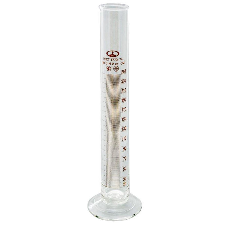 Разработан для дозирования нелетучих жидкостей. Изготовлен по ТУ 9464-013-52876351-2014 в соответствии с техническими требованиями ГОСТ 1770-74. Изделия изготовлены из химико-лабораторного стекла по ГОСТ 21400. Исполнение 1, класс точности 2. Нанесенная шкала коричневого или белого цветов совершенно устойчива к любым воздействиям. Объем - 250 мл. Допустимая погрешность - +2,0 мл. Цена деления - 2,0 мл. Высота не более - 335 мм.