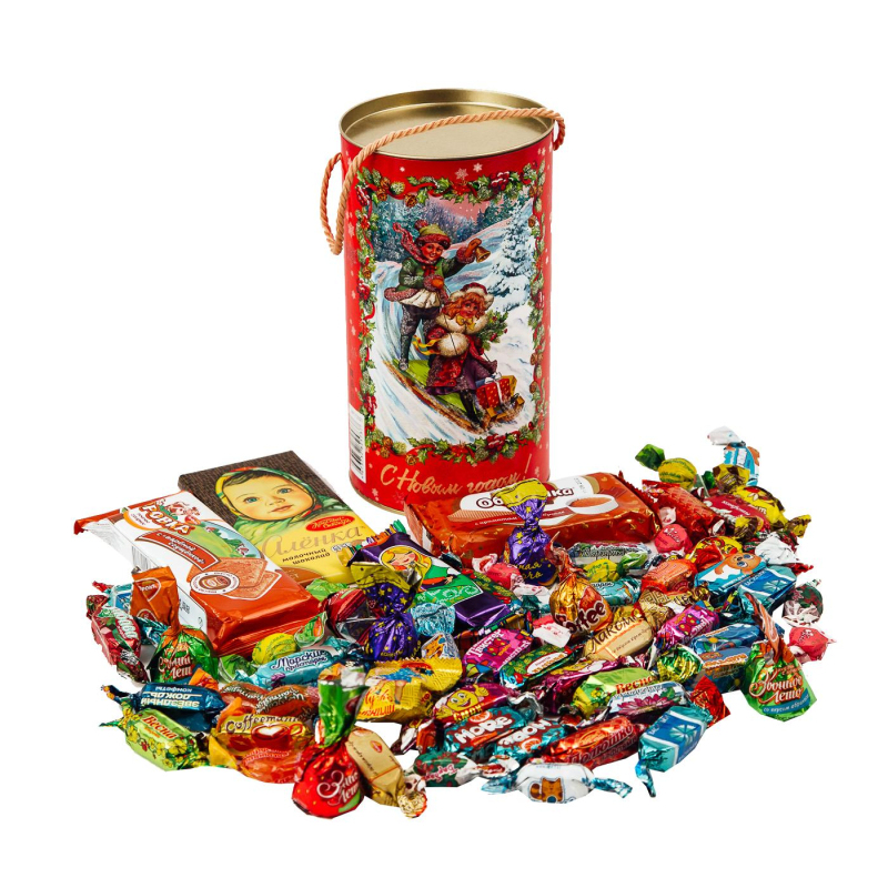 Картинка на новогоднем сладком подарке в тубе "Винтаж" отсылает нас к старым добрым временам: изящные шубы и сапожки, звонкие колокольчики и деревянные санки. И целый килограмм разных вкусностей от фабрик Объединенных кондитеров внутри. В дополнение к сладкому составу в подарок вложен набор игровых карточек "Мемори-Смайлики": это яркие карточки, которые в виде игры помогают развивать зрительную, слуховую и тактильную память, внимание и логическое мышление вместе с яркими смайликами. Размер упаковки: 12x12x22 см. Вес: 1000 г Срок годности: 6 месяцев. Состав кондитерского набора: 1. Шоколад "Аленка" 90 г (Красный Октябрь) 1 шт. 2. Вафли "Обожайка" с ароматом крем-брюле 50 г (Объединенные Кондитеры) 1 шт. 3. Печенье "Коровка" 92 г (Рот Фронт) 1 шт. 4. "Матрешка" с ореховым вкусом (Рот Фронт) 1 шт. 5. "Ну-ка отними!" (Красный Октябрь) 1 шт. 6. "Маргаритка" (Объединенные Кондитеры) 2 шт. 7. "Звездный дождь" (Рот Фронт) 2 шт. 8. "Лунная ночь" (Объединенные Кондитеры) 2 шт. 9. "Весна" (Объединенные Кондитеры) 2 шт. 10. "Сказка Фея" вкус Земляника (Красный Октябрь) 1 шт. 11. "Мишка виртуоз" (Объединенные Кондитеры) 2 шт. 12. "More" вкус йогурта и апельсина (Рот Фронт) 2 шт. 13. "Веснушки" (Рот Фронт) 2 шт. 14. "Мистер Твистер" (Рот Фронт) 2 шт. 15. "Мишка" (Рот Фронт) 2 шт. 16. "Coffeemania" (Объединенные Кондитеры) 2 шт. 17. "Смак" (Объединенные Кондитеры) 2 шт. 18. "Ромашки-лютики" (Объединенные Кондитеры) 2 шт. 19. "Морские просторы" (Объединенные Кондитеры) 2 шт. 20. "Лакомка" со вкусом крем-брюле (Рот Фронт) 2 шт. 21. "Васильковая страна" (Объединенные Кондитеры) 2 шт. 22. "Toffee Premio" (Красный Октябрь) 1 шт. 23. "Забава Веселый клоун" (Объединенные Кондитеры) 2 шт. 24. "Очумелый шмелик" (Рот Фронт) 2 шт. 25. "Желейные" барбарисовый вкус (Красный Октябрь) 2 шт. 26. "Звонкое лето" вкус клубника (Рот Фронт) 2 шт. 27. "Звонкое лето" вкус абрикоса (Рот Фронт) 2 шт. 28. Батончики "Полюшко" с вафлями (Красный Октябрь) 2 шт. 29. "Котик" (Рот Фронт) 2 шт. 30. "Цитрусовая фантазия" (Рот Фронт) 3 шт. 31. "Лимончики" (Рот Фронт) 3 шт. 32. "Барбарис" (Рот Фронт) 3 шт. 33. "Мечта" (Рот Фронт) 3 шт. Итого: 64 Внимание! Производитель подарочных наборов не является производителем кондитерских изделий и не может повлиять на возможное отсутствие конкретных наименований у фабрик-производителей на момент сбора. В случае наступления таких обстоятельств будет произведена замена на аналогичные позиции с сохранением категории, ценового сегмента и вкусовых характеристик.
