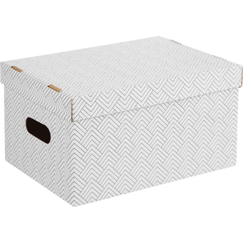 Короб с крышкой для хранения предназначен для архивации, хранения, перевозки документов, игрушек, тетрадей, вещей и прочих сухих предметов. Внешние размеры 330x250x180 мм. Внутренние размеры 324x244x180 мм. Материал короба - микрогофрокартон. Цвет - белый.