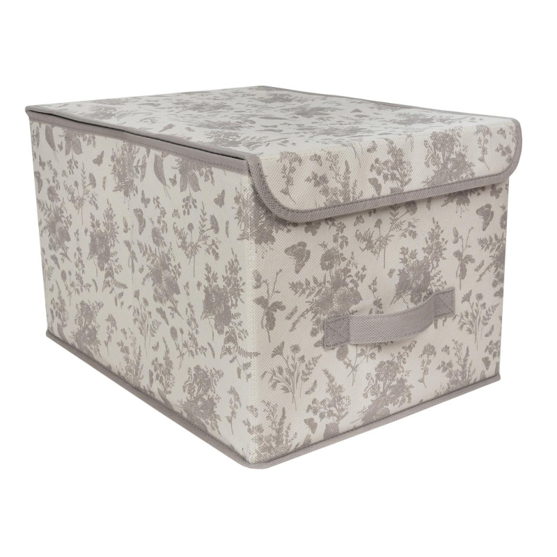 Короб изготовлен из нетканого полотна с красивым узором, изделие прекрасно впишется в любой интерьер. Короб гарантированно защитит ваши вещи от пыли, шерсти, волос, моли.В сложенном виде короб практически не занимает места. При необходимости легко раскрывается и приобретает жесткую форму за счет картонных бортов и дна.