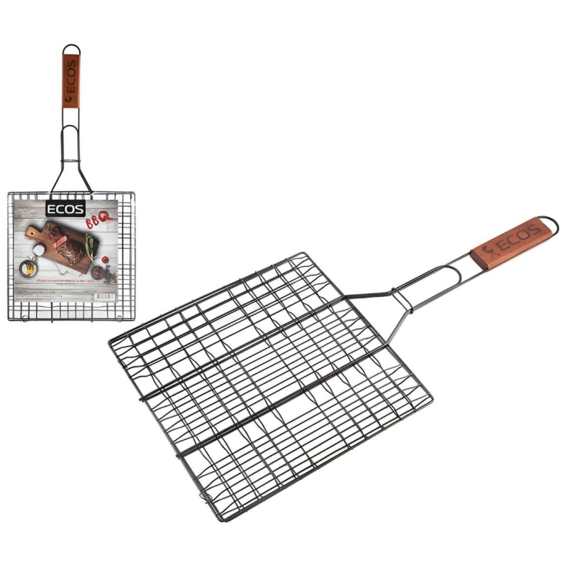 Решетка для барбекю Ecos X-382-NSW с антипригарным покрытием 25x25 см Любите с комфортом готовить на углях птицу, мясо, колбаски, рыбу и овощи? Предпочитаете использовать для этого качественные аксессуары . Надежная и удобная решетка-гриль с антипригарным покрытием для барбекю и мангала обеспечит вам условия для оптимально простого и максимально удобного процесса приготовления! Материал: сталь с антипригарным покрытием, ручка из древесины. Размер: 25x25 см. Общая длина: 54 см. Длина ручки: 10 см. Диаметр проволоки: 3мм, 2,5 мм, 1,5 мм.