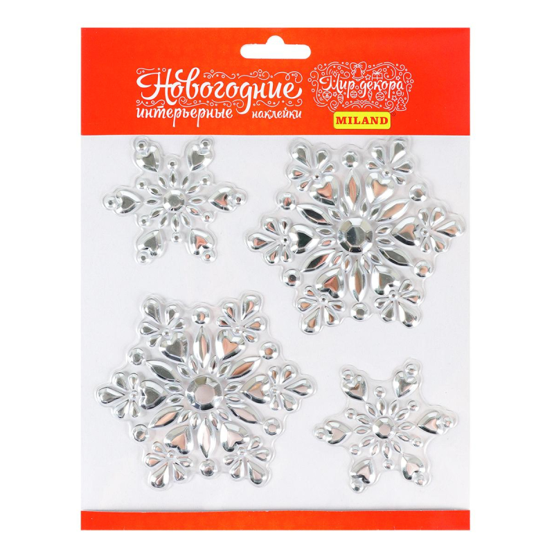 Наклейка Набор зимних снежинок серебристых (18x18 см). Интерьерные наклейки помогут дополнить новогодний декор! Они отлично подходят для украшения стен или окон. Клейкая основа надежно крепит наклейки и легко удаляется, не оставляя следов. Размер: 18x18 см.
