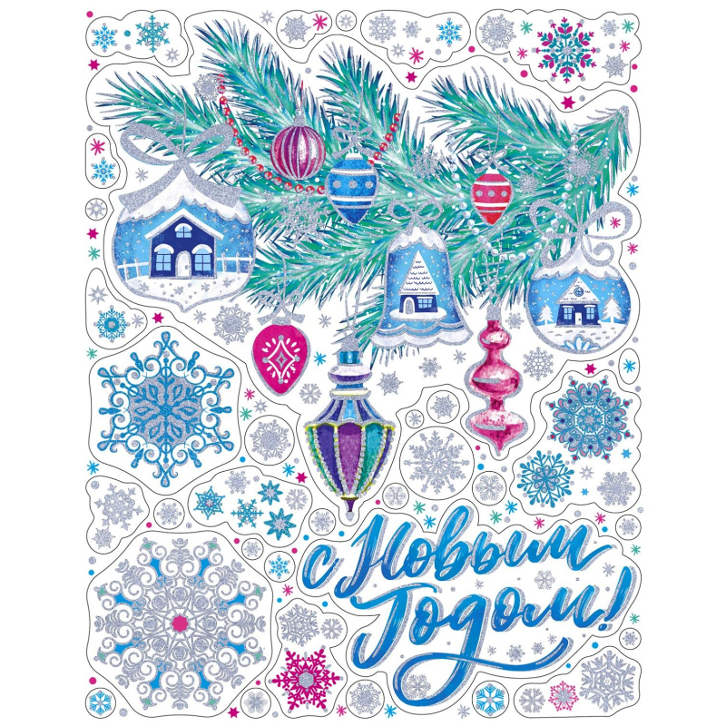 Украшение новогоднее оконное Веточка с игрушками 30х38см арт.90294