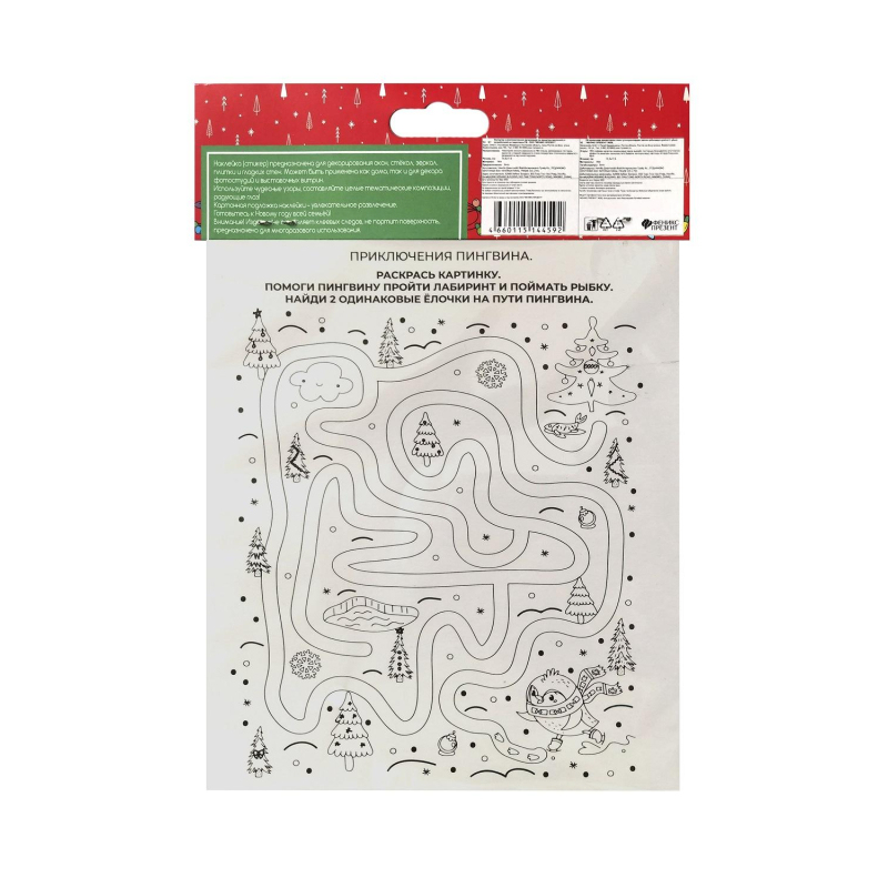 Наклейка предназначена для декорирования окон, зеркал, стекол, плитки и гладких стен. Может быть использована как для домашнего применения, так и в качестве декора фотостудий и выставочных витрин. Используйте чудесные узоры, составляйте целые тематические композиции, радующие глаз! Картонная подложка наклейки представляет собой раскраску. Готовьтесь к Новому Году всей семьей! Изделие не оставляет клеевых следов, не портит поверхность, предназначено для многоразового использования. На наклейку нанесен белый объемный рисунок из мерцающих блесток, который создает эффект морозных узоров.