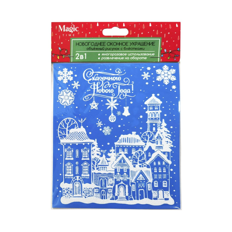 Наклейка предназначена для декорирования окон, зеркал, стекол, плитки и гладких стен. Может быть использована как для домашнего применения, так и в качестве декора фотостудий и выставочных витрин. Используйте чудесные узоры, составляйте целые тематические композиции, радующие глаз! Картонная подложка наклейки представляет собой раскраску. Готовьтесь к Новому Году всей семьей! Изделие не оставляет клеевых следов, не портит поверхность, предназначено для многоразового использования. На наклейку нанесен белый объемный рисунок из мерцающих блесток, который создает эффект морозных узоров.