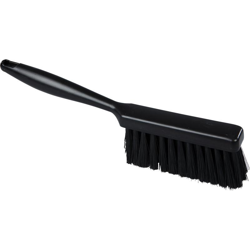 Щетка для сметания пыли. Ворс средней жесткости предназначен для уборки частиц среднего размера (сахара, шоколада, крошек, очисток и т.п.) во влажных зонах. В комплекте с совком может использоваться для подметания пола. Соответствует требованиям ХАССП. Материал: щетина - полиэстер, основание - полипропилен. Размеры: рабочая часть 50х140 мм; щетина: средней жесткости. Цвет: черный.