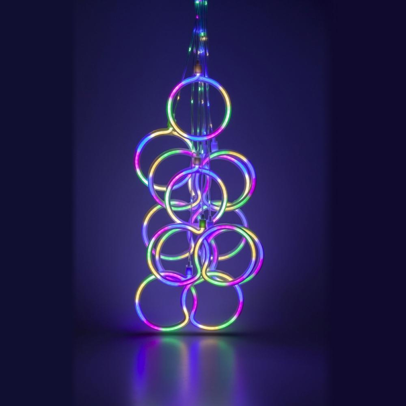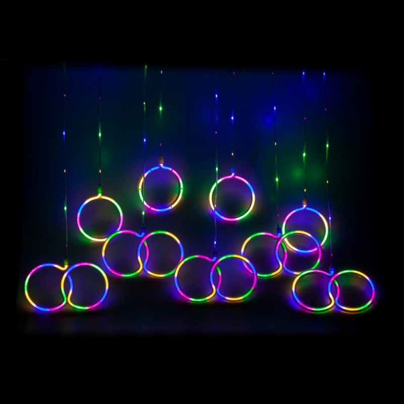 Новогодняя гирлянда светодиодная Эра "Неоновые кольца" 2.4х0.65 м EGNIG-RI создаст дома неповторимую атмосферу к Новому году и Рождеству! Гирлянда штора особенно красиво будет смотреться на окне. Данная модель состоит из 520 светодиодов с разноцветным светом (мультиколор), фигурки выполнены в форме одинарных и двойных колец. Электрогирлянда дождик имеет незаметные полупрозрачные провода, длина кабеля составляет 1.5 метра, класс защиты IP20 (использование внутри помещений), питание 220 В. Гирлянда LED ЭРА прослужит долгие годы, станет универсальным украшением гостиной, кухни, спальни или другого пространства, а еще это отличный подарок для Ваших любимых! Новогодний декор для дома всегда вдохновляет и дарит настроение праздника!
