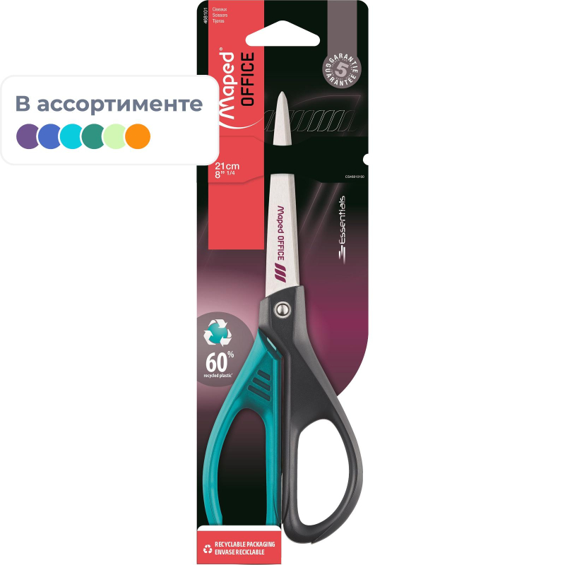 Ножницы Maped Essentials Green Deco 21 см. Лезвия и заклепка из высококачественной нержавеющей стали, симметричные. 2D эргономичные кольца изготовлены из переработанного пластика. Заостренные концы лезвий. Ножницы поставляются в эколоничной упаковке с европодвесом. Внимание! Товар поставляется в нескольких цветовых вариантах (без возможности выбора).
