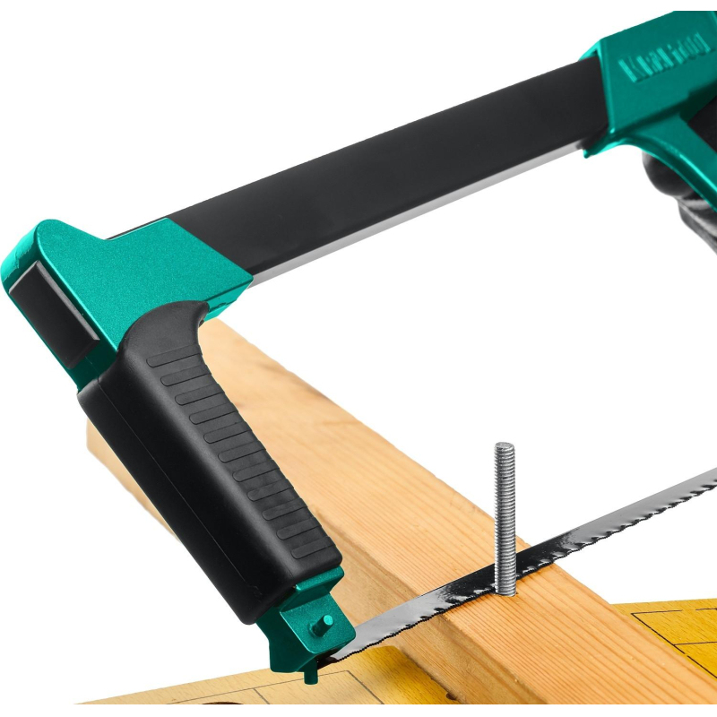 Ножовка Kraftool Super-Kraft 300 мм предназначена для пиления заготовок из металла. Профессиональная высокопрочная ножовка по металлу с очень высоким усилием натяжения полотна. Эргономичная рукоятка на передней стойке. Стальная прямоугольная рамка для высокой прочности. Установка полотна под углом 45° для пиления впотай. Эргономичная металлическая рукоятка из легкого сплава. Полотно изготовлено по инновационной технологии на уникальном оборудовании. Волнообразная разводка для эффективного и плавного реза. Внешний вид и/или характеристики товара могут быть изменены производителем в соответствии с производственным процессом.