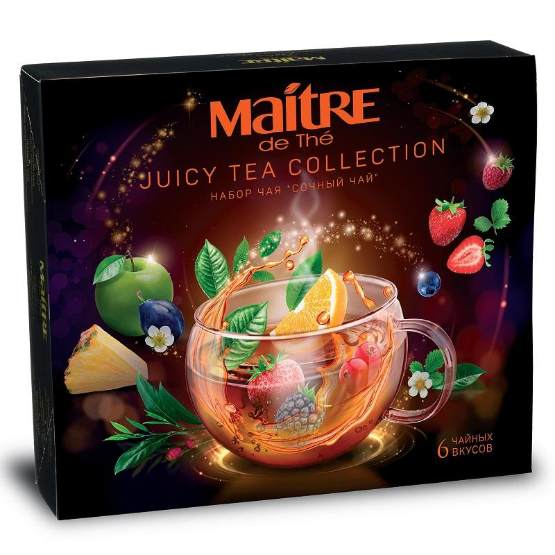 В состав НАБОРА вошли все чаи из новой линейки Сочный чай, а так же флагман ассортимента MAITRE de The МЭТР де Люкс - смесь черного индийского и цейлонского чая. В новой линейке мы соединили высококачественный чай с фруктами, травами и даже соком. Сок, даже в небольших количествах, дает полноту вкуса и аромата напитку. Благодаря использованию технологии его капсуляции, которая препятствует окислению, вкус сохраняется в течении всего срока годности. Для того, чтобы Вы смогли получить 100% удовольствие от напитка, его необходимо правильно заварить. Время и способ заваривания зависит от того, что лежит в основе напитка: черный чай или зеленый чай. Каждый сможет найти для себя любой чай по вкусу! Желаем Вам приятного чаепития в компании с чаем MAITRE de The! Состав набора: Ананас, Слива и цедра Апельсина, чай кенийский гранулированный ароматизированный с добавками растительного сырья; Грейпфрут, Виноград, чай частично ферментированный китайский оолонг листовой мелкий ароматизированный с добавками растительного сырья; Красная Смородина, Клубника, чай кенийский гранулированный ароматизированный с добавками растительного сырья; Малина, Черника и Ягоды Годжи, чай частично ферментированный китайский оолонг листовой мелкий ароматизированный с добавками растительного сырья; Яблоко, Ананас, чай кенийский гранулированный ароматизированный с добавками растительного сырья; Мэтр де люкс смесь чая черного цейлонского гранулированного и чая черного индийского гранулированного. Способ заваривания: для заваривания чая необходимо использовать только свежекипяченую воду, для черных чаев температура воды 95-97 С, время заваривания 4-5 минут; для зеленых чаев температура воды 80-85 С, время заваривания 3-4 минуты; для улунов температура воды 85-90 С, время заваривания 3-4 минуты. Вес: 60 г, 30 пакетиков в упаковке. Тип упаковки: картонная пачка. Страна производства: Россия.