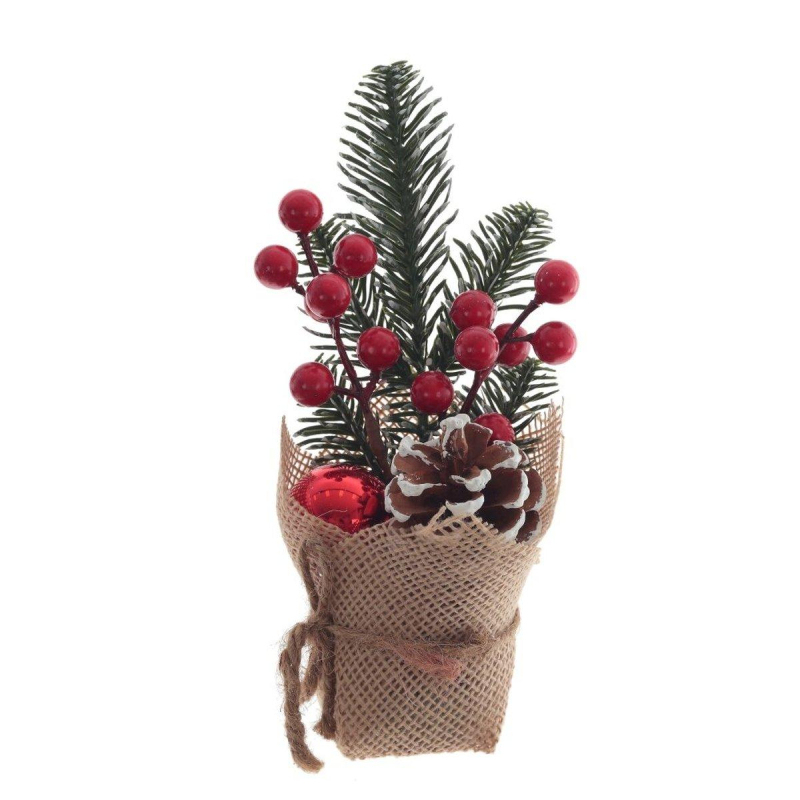 Яркие красные ягоды, расположенные среди пушистых сосновых веточек в кашпо смотрятся невероятно стильно и празднично! Изделие создаст невероятно душевную и праздничную атмосферу!Упаковка - пакет