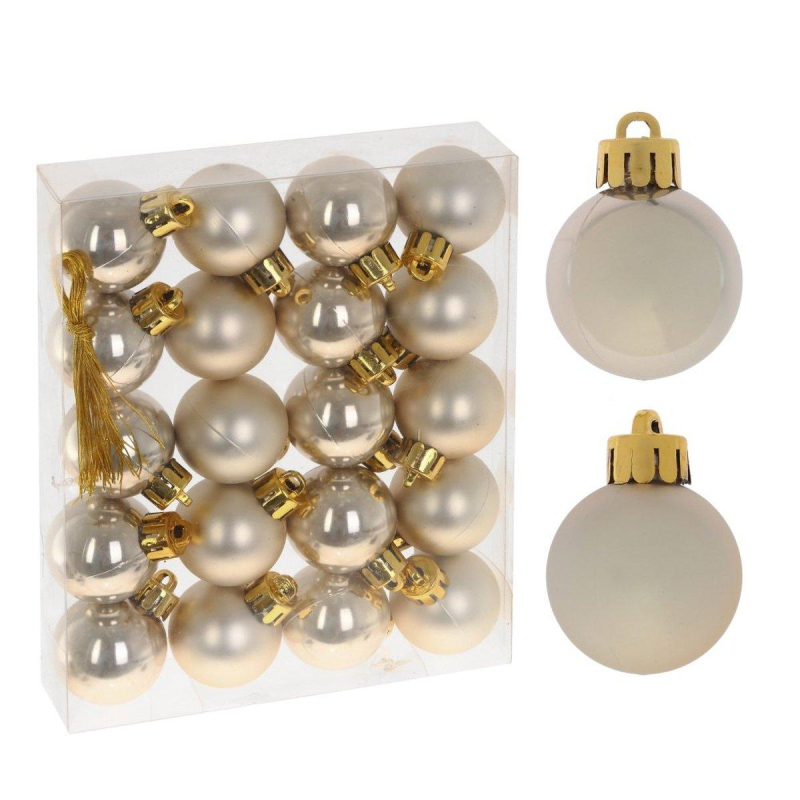 Набор из 20 пластиковых елочных шаров диаметром 3 см, выполненных в единой золотистой цветовой гамме. В составе набора украшения разной фактуры - глянцевые и с глиттером. Прекрасно смотрятся в убранстве новогодней ели. Подвешиваются с помощью петли. Набор поставляется в прозрачной пластиковой упаковке.