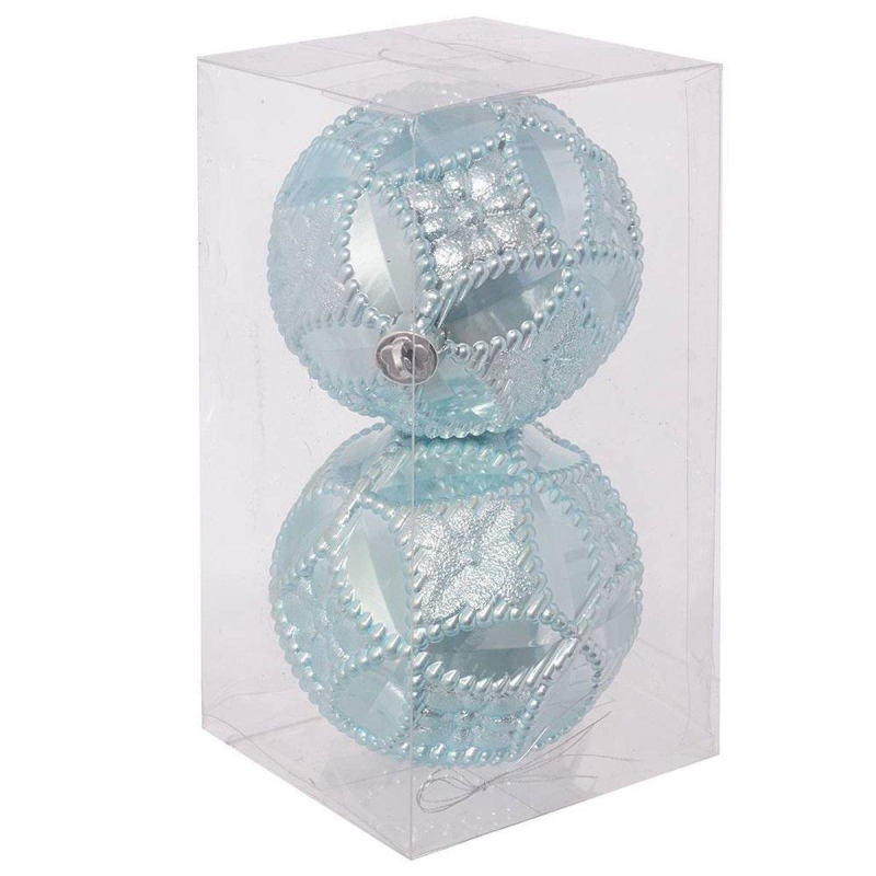 Оригинальный набор из 2-х елочных шаров голубого цвета. Прекрасно подойдет для праздничного декора новогодней ели и интерьера. Несет в себе волшебство и красоту праздника. Украшения выполнены из пластика. В наборе: шары глянцевые с рельефной поверхностью. Поставляются в прозрачной пластиковой упаковке.