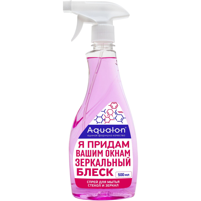 Средство для стекол и зеркал Aqualon Блеск 500 мл (с нашатырным спиртом). Назначение: Предназначено для мытья зеркал, оконных и автомобильных стекол, пластиковых оконных рам, витрин, кафеля, изделий из хрусталя, пластика и других водостойких поверхностей. Современная рецептура на основе нашатырного спирта позволяет эффективно без разводов удалять грязь, пыль, отпечатки пальцев, жировые и другие загрязнения. Придаст очищенной поверхности приятный аромат и зеркальный блеск. Способ применения: Повернуть носик распылителя в положение 'SPRAY' или 'ON'. Нанести средство на очищаемую поверхность с расстояния 15-25 см. Протереть хорошо впитывающей салфеткой, мягкой тканью или сгоном. При сильном загрязнении процедуру повторить. Меры предосторожности: Не распылять в лицо и глаза! Не употреблять внутрь. Хранить в недоступном для детей месте. Состав: Деминерализованная вода, нашатырный спирт (
