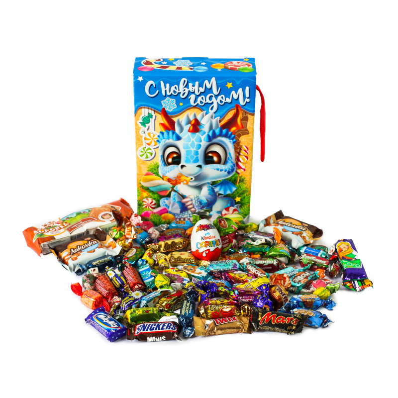 Новогодний сладкий подарок в картонной упаковке "Зефирчик" представляет собой очень красивого юного дракончика, который забавно поджаривает маршмеллоу (кстати, маршмеллоу на самом деле есть и в наборе!). Прочная удобная упаковка с необычной ручкой-шнурком и удивительно вкусный набор сладостей внутри: шоколадное яйцо с киндер-сюрпризом, шоколадные минибатончики фабрики Марс, вафли, пирожное, мармелад, конфеты - чего там только нет! Попробуйте сладости на любой вкус. В дополнение к сладкому составу в подарок вложен набор игровых карточек "Мемори-Смайлики": это яркие карточки, которые в виде игры помогают развивать зрительную, слуховую и тактильную память, внимание и логическое мышление вместе с яркими смайликами. Размер упаковки: 17,5 х 5,5 х 26 см Вес: 1000 г Срок годности: 6 месяцев Состав кондитерского набора: 1 "Киндер Сюрприз" 20г ФЕРРЕРО 1 2 "Марс" Минис МАРС 1 3 "Милки Вей" Минис МАРС 1 4 "Твикс" Минис МАРС 1 5 Шоколадный батончик "SUPER" 40г KDV 1 6 Шоколадный батончик "Спринт" 50г KDV 1 7 ВАФЛИ "Обожайка" с ароматом крем брюле 50г Объединенные Кондитеры 1 8 Маршмеллоу Zerfer solo 40г KDV 1 9 Вафельное Пирожное "Лакомка" 30г Объединенные Кондитеры 1 10 Жевательный мармелад "Маяма" 70г KDV 1 11 "Super " KDV 2 12 "Jet`s" с печеньем KDV 2 13 "Джази" KDV 2 14 "ФрутСтори" KDV 2 15 "Руа" Эссен Продакшн АГ 3 16 "Шадо" вишневое Эссен Продакшн АГ 3 17 "Звездный дождь" РотФронт 2 18 "Мишка" РотФронт 2 19 "Coffeemania" Объединенные Кондитеры 2 20 "Смак" Объединенные Кондитеры 3 21 "Ромашки-лютики" Объединенные Кондитеры 3 22 "Морские просторы" Объединенные Кондитеры 3 23 "Лакомка" со вкусом крем-брюле РотФронт 3 24 "Шантарель" KDV 2 25 "Глейс" кокосовый вкус KDV 3 26 "MORE" вкус йогурта и апельсина РотФронт 2 27 "Глейс" шоколадный KDV 2 28 "Juicy light" экзотик KDV 2 29 "Nessy" KDV 3 30 "Цитрусовая фантазия" РотФронт 3 31 "Лимончики" РотФронт 3 32 "Барбарис" РотФронт 3 33 Леденец с фрук. начинкой ассорти с соком KDV 3 ИТОГО 68 Внимание! Производитель подарочных наборов не является производителем кондитерских изделий и не может повлиять на возможное отсутствие конкретных наименований у фабрик-производителей на момент сбора. В случае наступления таких обстоятельств будет произведена замена на аналогичные позиции с сохранением категории, ценового сегмента и вкусовых характеристик.